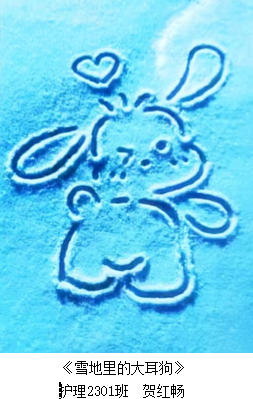 《雪地里的大耳狗》机灵又调皮,展示着护理系学生青春洋溢、朝气蓬勃的精神面貌和热爱生活、自信乐观的美好品质。