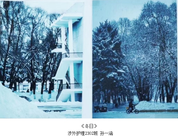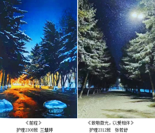 护理系学生用其独特的视角发现校园的美,感受校园的暖,《前程》、《冬日》、《致敬微光,以爱相伴》等优秀作品不仅展现了冬日校园的宁静、从容,更体现出护理系学生对未来充满着美好的期许和憧憬。