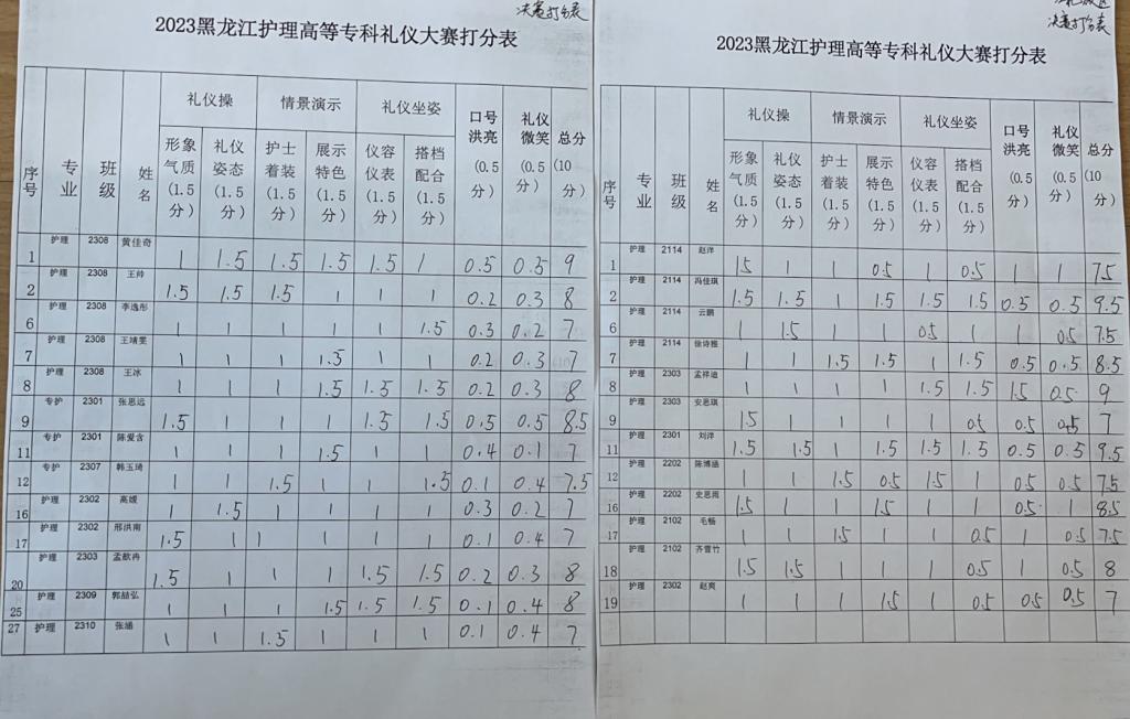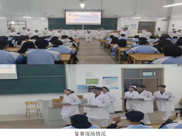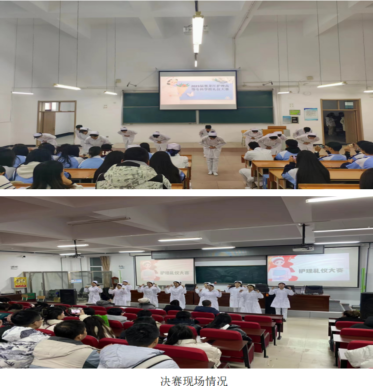 4.此次比赛设立了仪容仪表、站姿、坐姿、行姿、蹲姿、持病历夹等规定动作,每一组出场都精彩纷呈,现场掌声不断。气氛紧张而活跃,整场比赛井然有序。经过激烈的角逐,综合评委老师的打分,共选取25人进入最终礼仪操环节,礼仪操展示在同学们响亮的口号“不负韶华,追梦青春”中完美落幕。由白佳旭老师宣读阿城校区获奖情况,一等奖2名、二等奖5名、三等奖6名、优秀奖13名。并向获奖选手表示祝贺。由纪慧敏老师宣读江北校区获奖情况,一等奖2名、二等奖4名、三等奖6名。并向获奖选手表示祝贺。