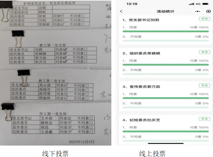 校党委任命宗晓同志为护理系党总支书记,根据《中国共产党基层组织选举工作暂行条例》及护理系实际情况,护理系党总支下设四个党支部,教工第一党支部、教工第二党支部、学工第一党支部、学工第二党支部。会议通过线上线下无记名投票的方式选举产生党总支支委会成员及四个支部支委会成员。