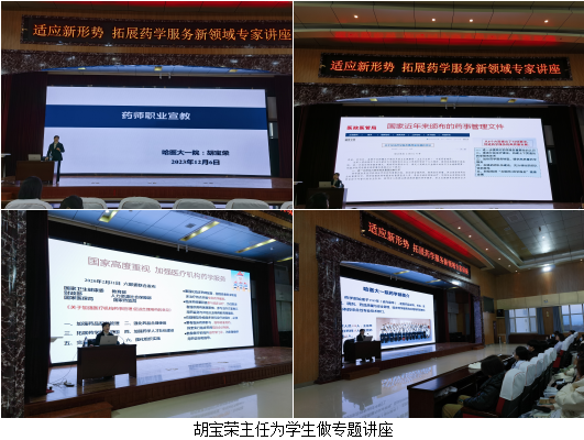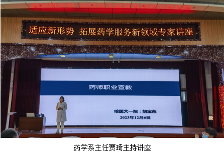 为深入贯彻落实《黑龙江护理高等专科学校关于全面推进康养护特色鲜明的高水平技术技能型高等职业学校建设的实施意见》,切实实施“三导三进三融合”人才培养模式,深化“校企”产教融合、落实“岗位”育训并重,12月6日下午,药学系邀请哈尔滨医科大学附属第一医院药学部临床药学室副主任、ICU专职临床药师、国家临床药师培训基地抗感染专业带教药师胡宝荣来我校作《药师职业宣教》专题讲座,充分解读医疗机构对药学服务岗位的职业能力要求。药学系全体教师及学生聆听讲座。讲座由药学系主任贾琦主持。