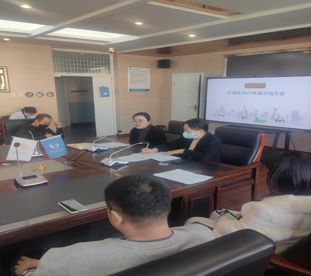 2023年12月15日13点,在南岗校区实训楼七楼会议室,护理系党总支召开扩大会议,暨护理系系部年度总结大会。会议采取线上线下相结合的方式,由护理系党总支书记宗晓主持。