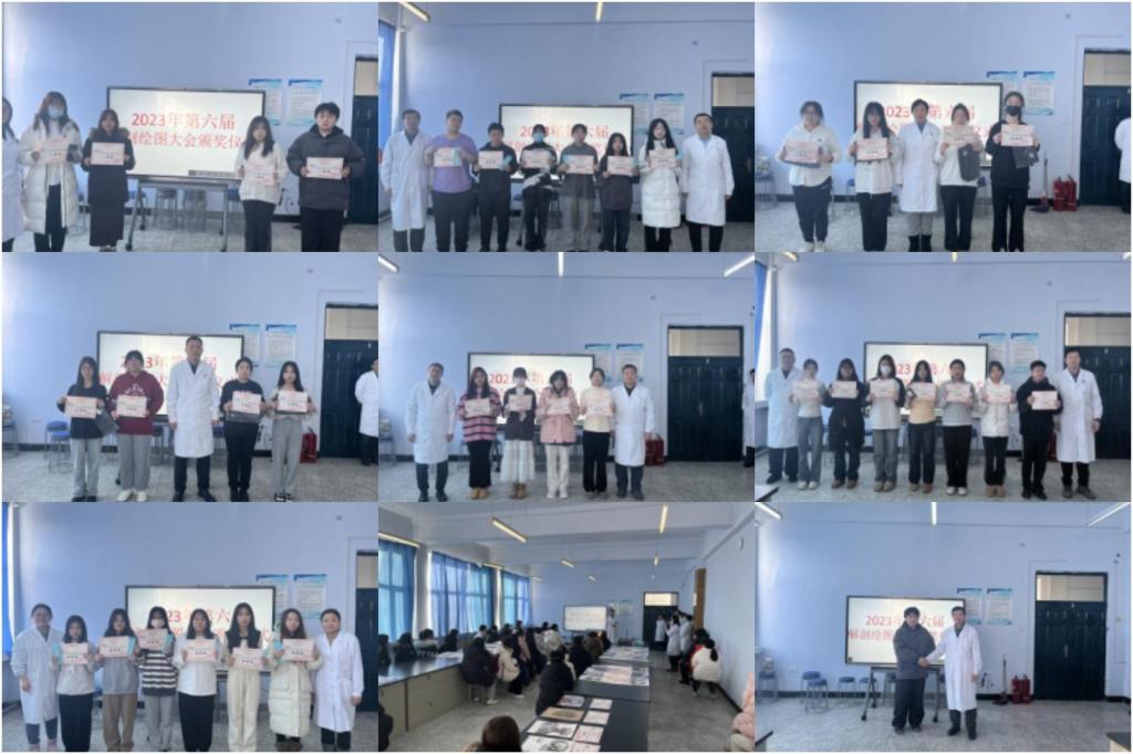 基础医学部举行颁奖仪式,解剖教研室主任马德全为第六届解剖绘图大赛获奖同学致词,系部主任廖林楠、解剖教研室授课老师为同学们颁发奖品和奖状。