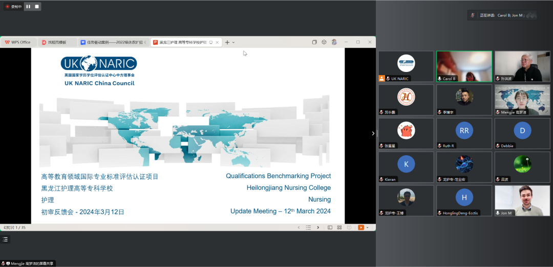 3月12日,我校召开线上国际认证评估初审反馈会,副校长杨丽妲、教务处、护理系、人事处、国际教育部、招生就业处、现代技术教育负责人及英国认证中心职业教育和审查负责人乔纳森·马吉特、学科领域专家卡罗尔、质量保障专家罗伊、全球项目合作中国亚洲商业协调负责人邓红玲、英国国家学历学位评估认证中心中国办公室工作人员参加会议。
