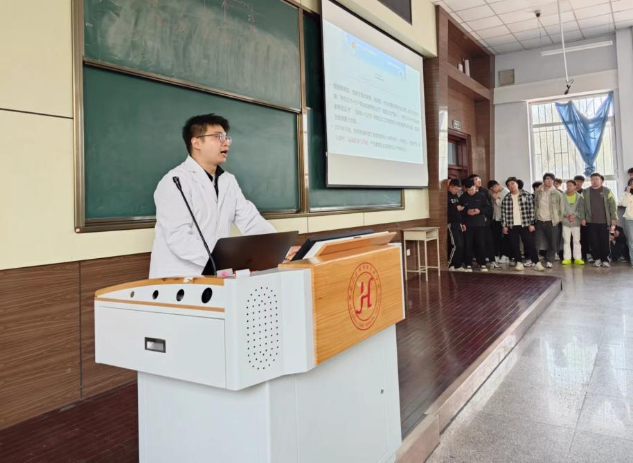 临床医学系副主任李龙飞为学生详细介绍了证书的基本情况、报名及考试的相关要求,鼓励学生积极报名,充实自己。