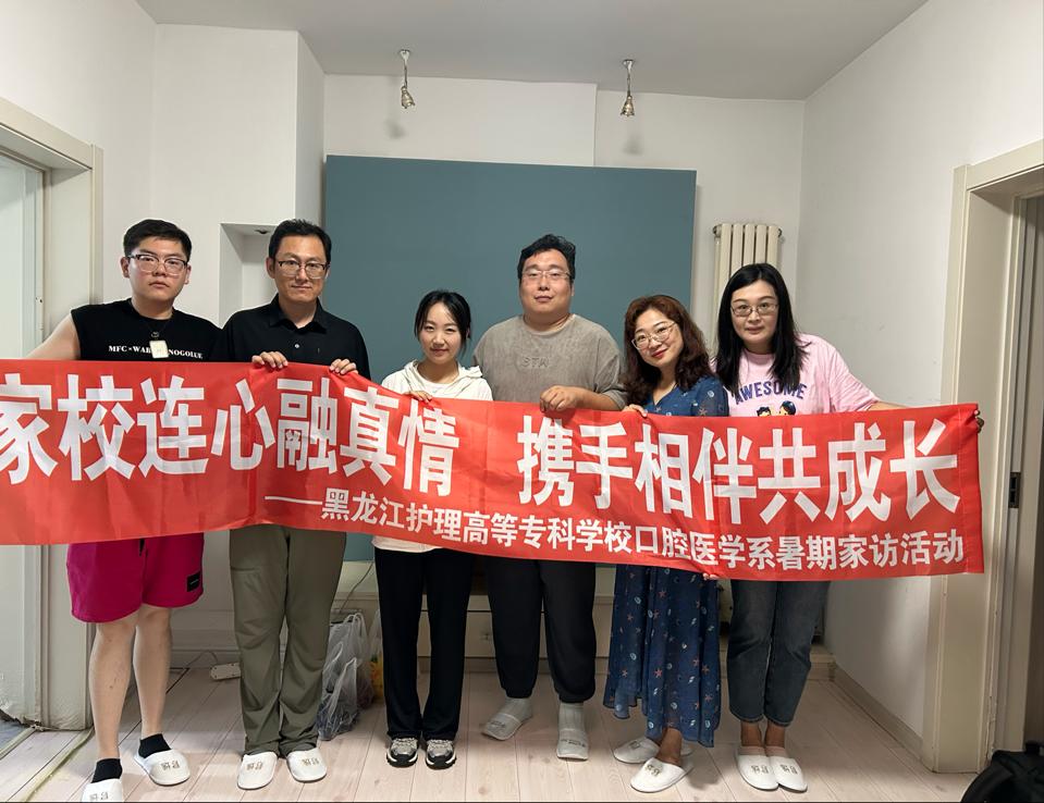 在新中国成立75周年之际,深入学习贯彻习近平新时代中国特色社会主义思想和党的二十大、二十届三中全会精神,落实立德树人根本任务,践行“入校是学生,出校是天使,服务人类健康的康养护追梦人”的办学理念,提升学校管理服务工作质量,推动应届毕业生就业工作。7月26日,学生工作部负责人刘哲妍、口腔医学系书记付广权、辅导员刘帅、尹煜燊、周京开展暑假家访活动,走访探望口腔医学系21级口腔医学技术和口腔医学专业学生。