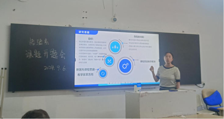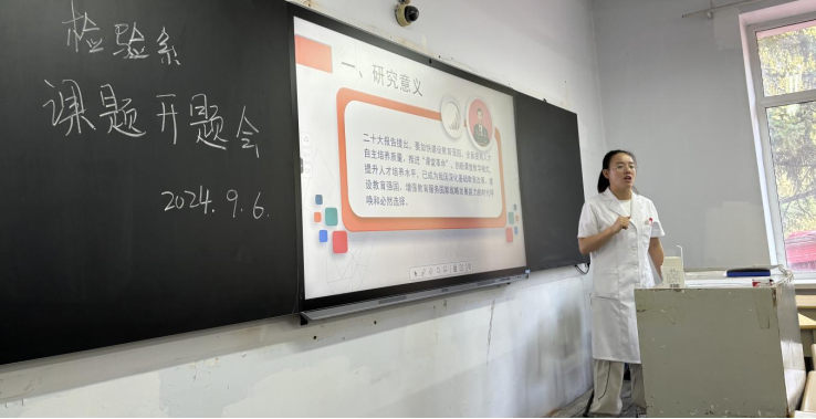 9月6日,医学检验系于南岗校区三号楼206顺利举行了3项校级课题,1项省规划办课题的开题报告会。医学检验系书记张锐、主任孙革新、各课题组成员及系部全体教师参加了本次开题报告会,刘玉敏老师主持本次开题会,张锐教授、孙革新教授及夏春梅教授担任此次开题评审专家。本次开题报告会由丛瑞华、姜竹、李媛媛汇报,旨在推动教育改革,提升人才培养质量。