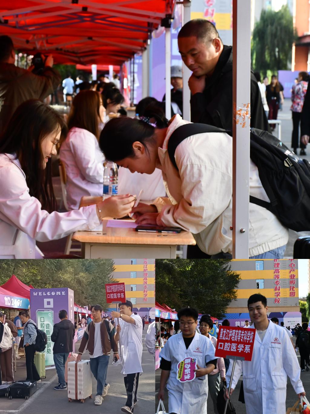 新生及家长到特色打卡点拍照,领取口腔系新生纪念品,并写下对新生活的期许。