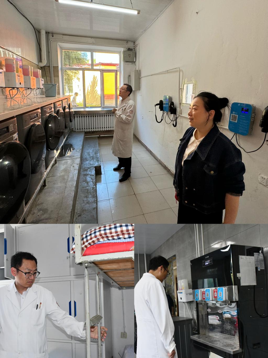 在慰问过程中,教师与新生面对面交谈,了解他们的生活状态和适应情况。教师不仅关心学生的基本生活需求,还特别关注他们的宿舍环境。他(她)们仔细查看了宿舍内的各类设施,包括洗衣机、开水机、床铺、柜子等,确保这些设施都能够满足新生们的日常需求。