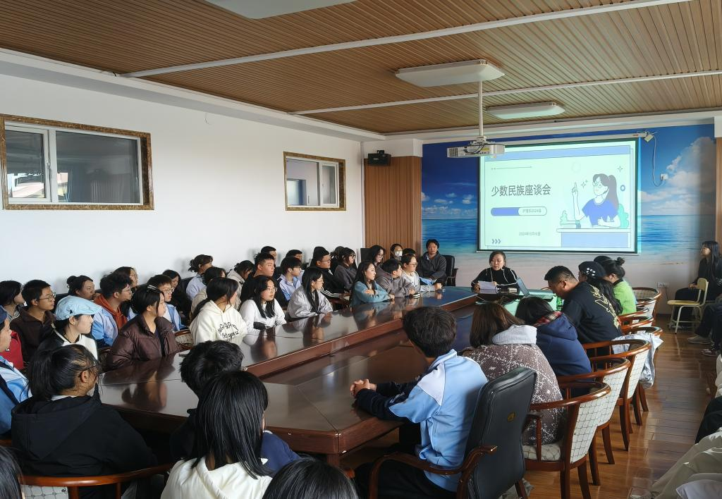 为深入了解护理系2024级少数民族学生的学习、生活情况与发展现状,营造民族一家亲的良好育人氛围,铸牢中华民族共同体意识,10月16日在行政楼五楼会议室召开少数民族学生座谈会。会议由护理系辅导员王晶鑫主持,全体新生辅导员及2024级16个少数民族共计66个同学代表参加会议。