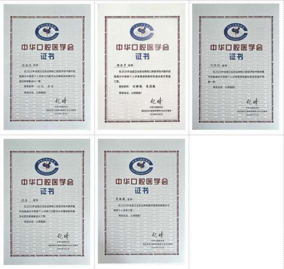 在教师技能展示活动中,刘雅琨老师荣获教师组窝洞预备和双层全瓷牙预备一等奖,房房老师荣获口内数字化印模制取和数字化固定桥修复设计三等奖,夏德薇老师荣获了全国卫生职业院校教师授课三等奖,充分体现了我校口腔医学系的教师的专业技能水平、数字化口腔医学技术能力以及优秀的教学能力。