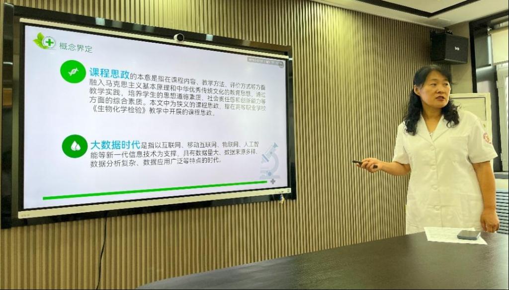 会上,课题负责人夏春梅从研究背景、核心概念、研究目标、研究内容、技术路线、创新点、预期成果等方面作了详实汇报。她指出,随着检验医学迈入“大数据+人工智能”新阶段,传统《生物化学检验》课堂面临“技术迭代快、思政融入浅、学生获得感弱”三大痛点。课题组拟构建“数据驱动的课程思政资源库”,打造“检验案例+思政故事+数字孪生实验”三位一体教学模式,形成可复制、可推广的高职医学课程思政模式。