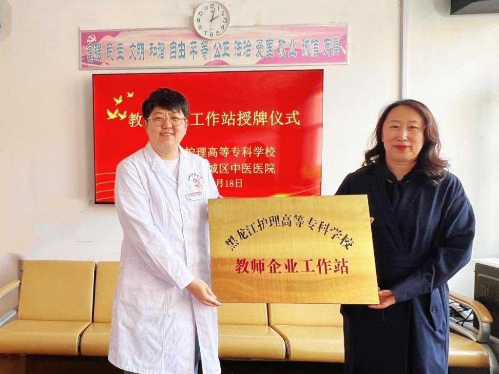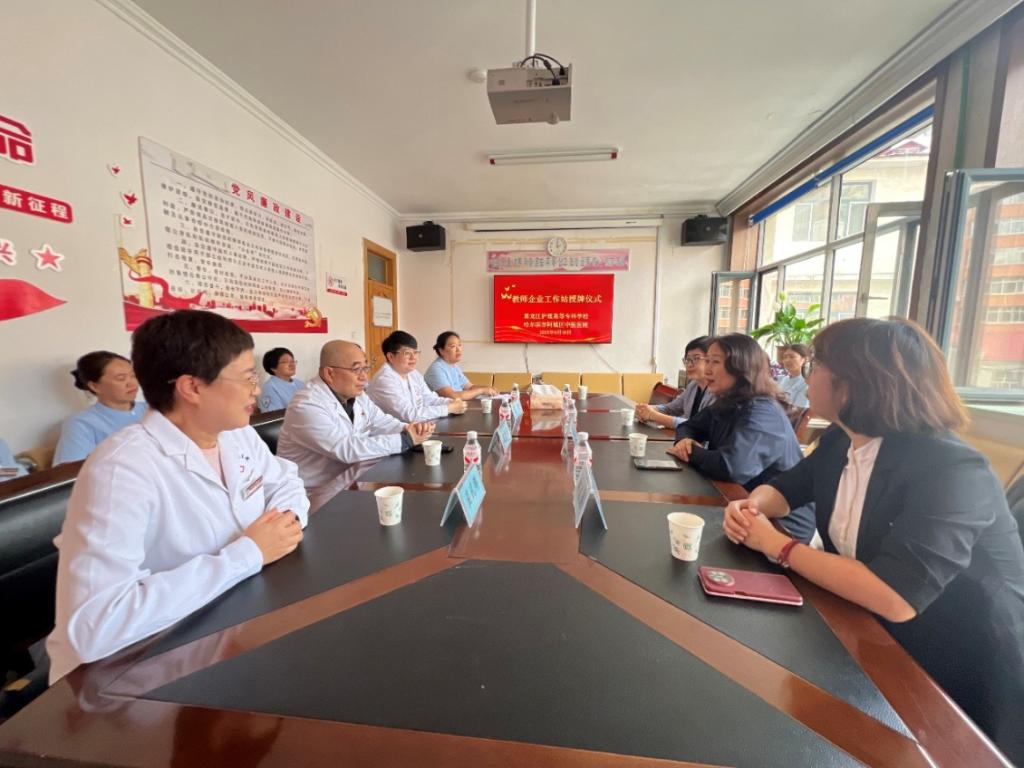 挂牌仪式后,双方围绕中医护理教学、中医健康服务合作等议题深入交流。教师企业工作站不仅是教师实践与教学研究的平台,还将面向社区开展中医护理科普、慢性病照护指导等服务,真正实现“育人才、强服务、促发展”的校院合作目标,为“健康龙江”建设注入中医药护理领域的强劲力量。