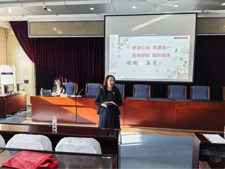 为进一步深化“三全育人”综合改革,将思想政治教育有机融入护理专业人才培养全过程,近日,我校护理系特邀国家级课程思政教学名师东北农业大学吕武教授为护理系教师作了题为“护理专业课程思政的教学设计与融入”的专题讲座。本次活动在我校南岗校区2号楼6楼报告厅举行,护理系全体教师到场聆听学习。