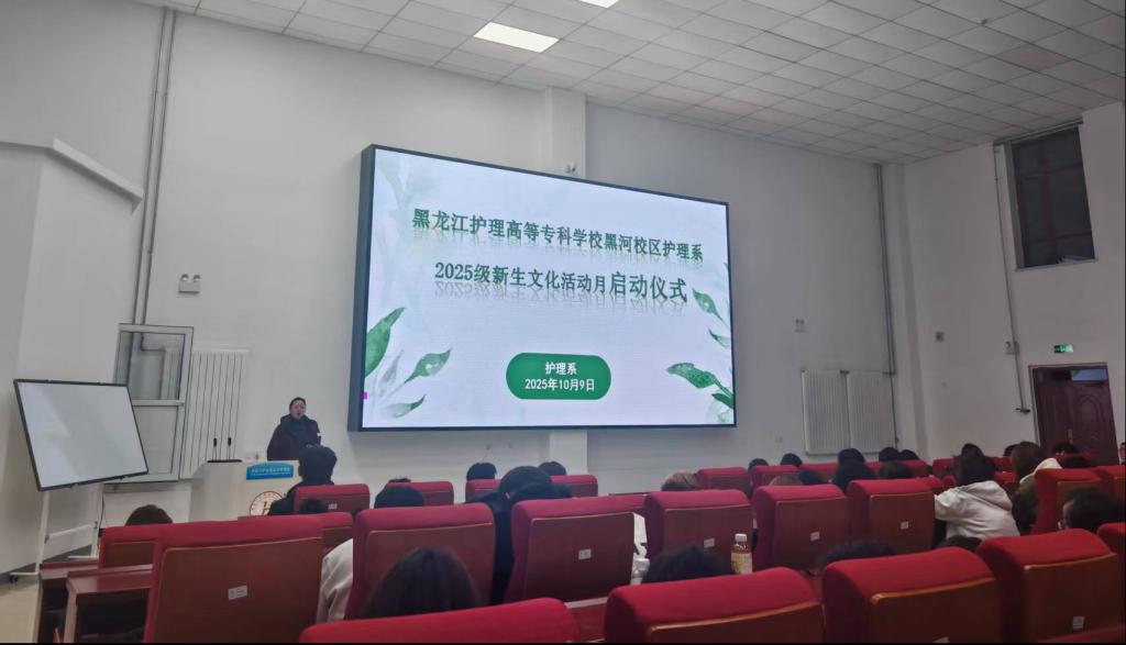 10月9日,黑河校区护理系2025级新生文化活动月启动仪式在教学楼一楼阶梯教室举行。护理系党总支书记宗晓主持活动。
