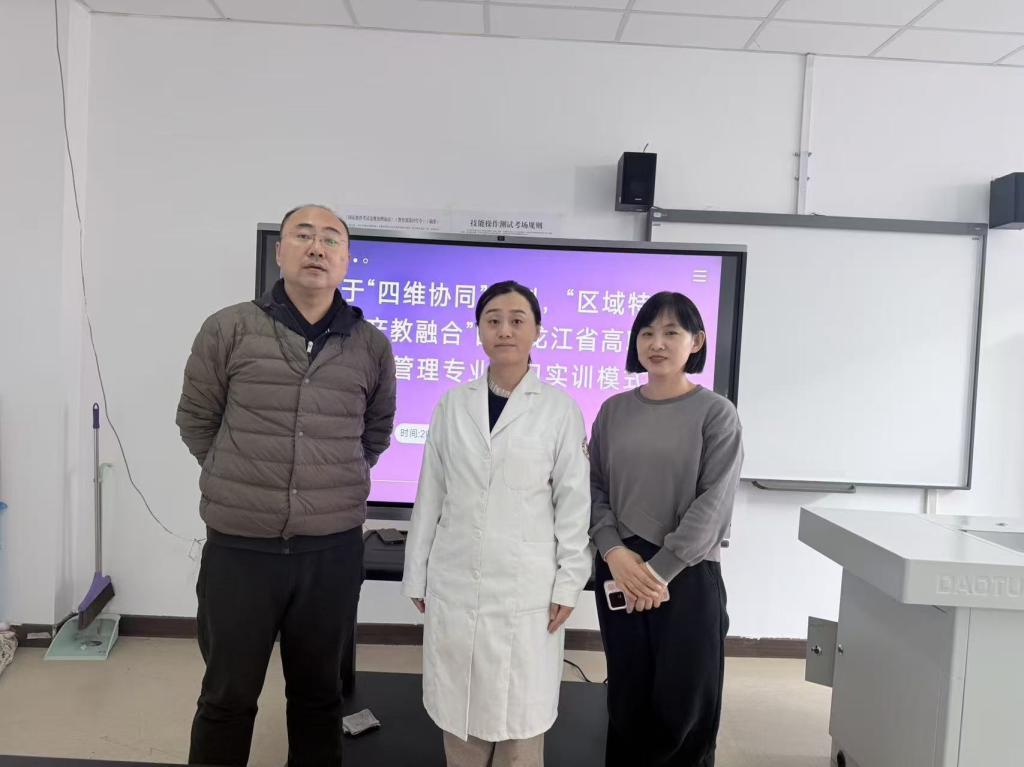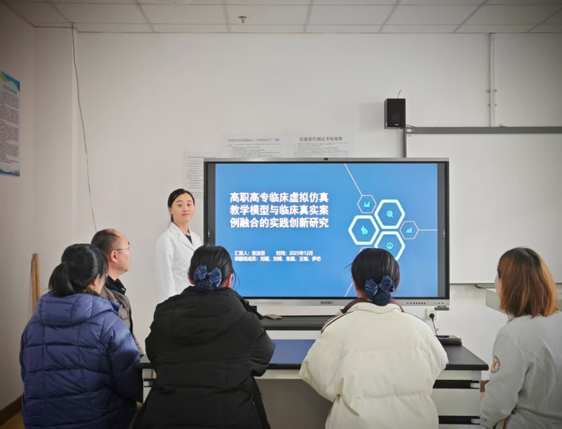 立项的2个校级课题负责人依次上台,围绕课题研究背景、研究目标、研究内容、技术路线、创新点及预期成果等方面进行详细阐述。付饶老师主持的《基于“四维协同”机制,“区域特色导向产教融合”的黑龙江省高职院校健康管理专业实习实训模型创新研究》聚焦以“四维协同”机制为引擎,驱动政府、院校、企业、行业在健康管理实习实训中同频共振,紧扣龙江区域特色,将寒地慢病管理、健康服务等本土需求嵌入产教融合,打造高职院校健康管理专业实习实训的创新模型;张洁羽开展的《高职高专临床虚拟仿真教学模型与临床真实案例融合的实践创新研究》,旨在破解高职高专临床教学中“高成本、高风险、少病例”的实训瓶颈,用虚拟仿真技术把真实病例搬进课堂。打通“虚拟—真实”数据壁垒,让学生在反复模拟中掌握规范诊疗路径,解决传统实习“看得多、做得少”的能力断层问题。各课题研究方向贴合临床实际,兼具学术价值与应用前景,充分展现了临床医学系教师的科研视野与责任担当。