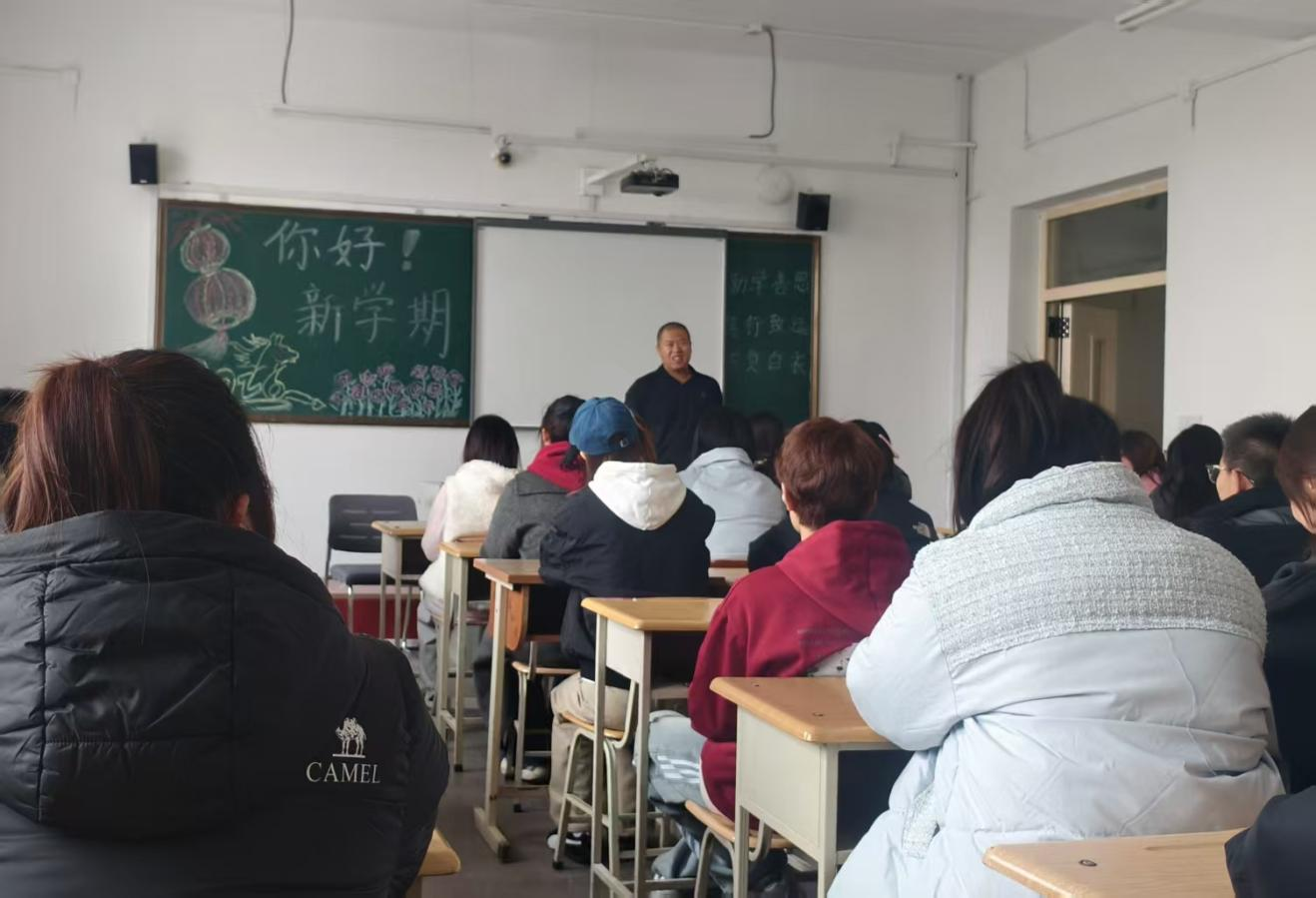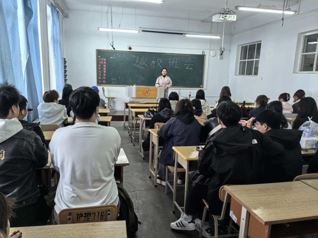 报到工作核心环节,临床医学系聚焦思想引领,打造多维度“开学第一课”矩阵。阶梯教室内,“临床医学系 开学第一课”的板书醒目有力,师生齐聚一堂,重温医学使命;辅导员围绕学风建设、安全规范开展专题教育,黑板上“你好!新学期”的字样,承载着收心聚力的期许。从医德涵养、专业学习、临床实践等方面为学子引路,重申“敬佑生命、救死扶伤”的职业精神,引导大家快速从“假期模式”切换至“学习模式”。