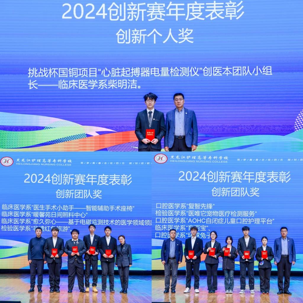我校在2024年度创新赛中也涌现出一批表现突出的团队和个人,口腔医学系“复智先锋”等9个项目荣获创新团队奖,临床医学系柴明洁荣获创新个人奖。这些创新成果体现了学校在培养学生创新思维和实践能力方面取得的显著成效。