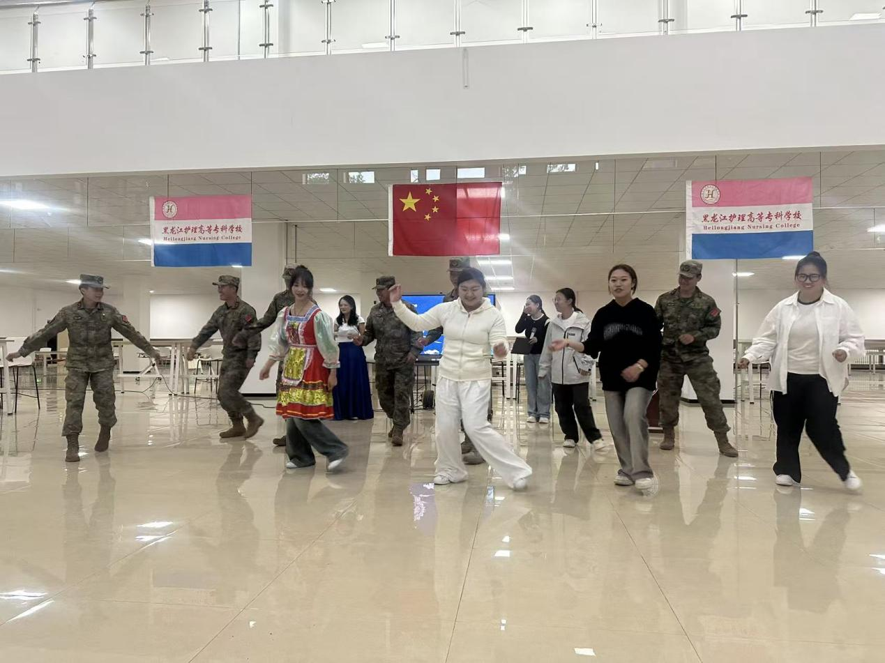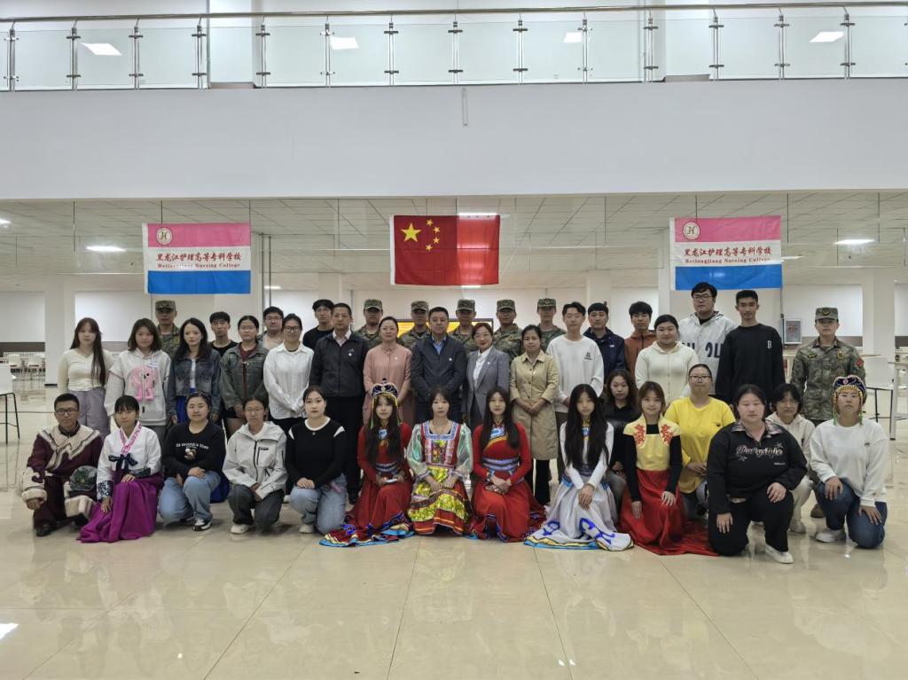 为进一步深化民族团结进步教育,将军民同心与家国情怀融入校园文化建设。9月12日,在新生军训这一特殊教育契机下,黑龙江护理高等专科学校黑河校区创新军训内容,组织开展“各民族文化交流暨军民同心共建”活动。校优秀退役士兵代表(军训教官)与黑河校区广大师生共同参与,通过多元化活动形式,让各民族学生在互动中感悟民族团结力量,强化集体意识与国防观念,为实现中华民族伟大复兴凝聚青春力量。