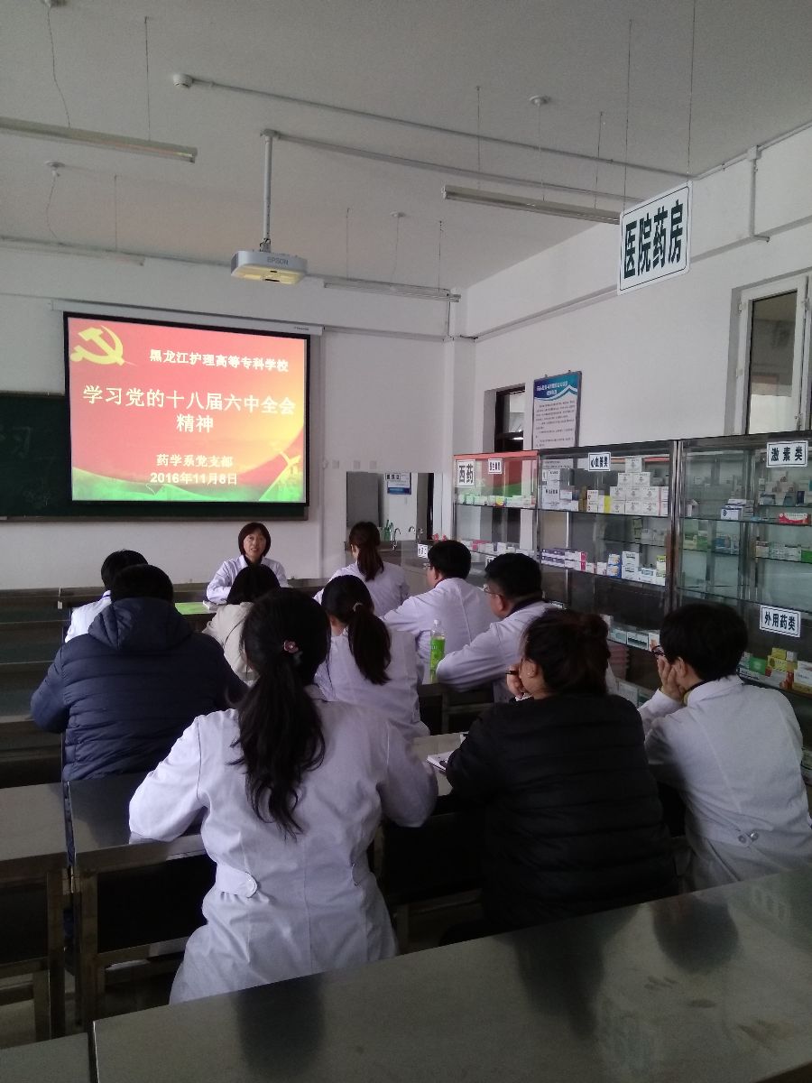 为全面学习党的十八届六中全会精神,药学系于2016年11月8日中午在药学院110室开展学习《党的十八届六中全会公报》、《新形势下党内政治生活若干准则》、《中国共产党党内监督条例》、王宪魁书记在省委中心组学习会上的讲话等文件,并对党的十八届六中全会精神进行学习。会议由药学系赵秀梅书记主持,药学系11名党员教师参加集体学习。赵秀梅书记强调教师党员要在学习贯彻党十八届六中全会精神上做表率,坚决维护以习近平同志为核心的党中央权威,更加扎实地把党中央的各项决策部署落到实处,全力以赴做好药学系各项工作。作为高校教师要把深入学习贯彻全会精神作为当前和今后一个时期的一项重要政治任务,持续深入学习全会精神。通过深入学习,不断提升思想政治水平和认识水平,提升业务能力和工作能力,提升从严治党、严以律己的自觉性。通过学习,与会教师展开了热烈的讨论。作为一名党员教师要全面贯彻党的十八届六中全会精神,树立政治意识、大局意识、核心意识、看齐意识,坚定不移维护党中央权威和党中央集中统一领导,坚定理想信念,坚持党的优良作风,带头讲修养、讲道德、讲诚信、讲廉耻,发挥党员教师应有的模范带头作用,努力提高教学质量、调动学生学习积极性。