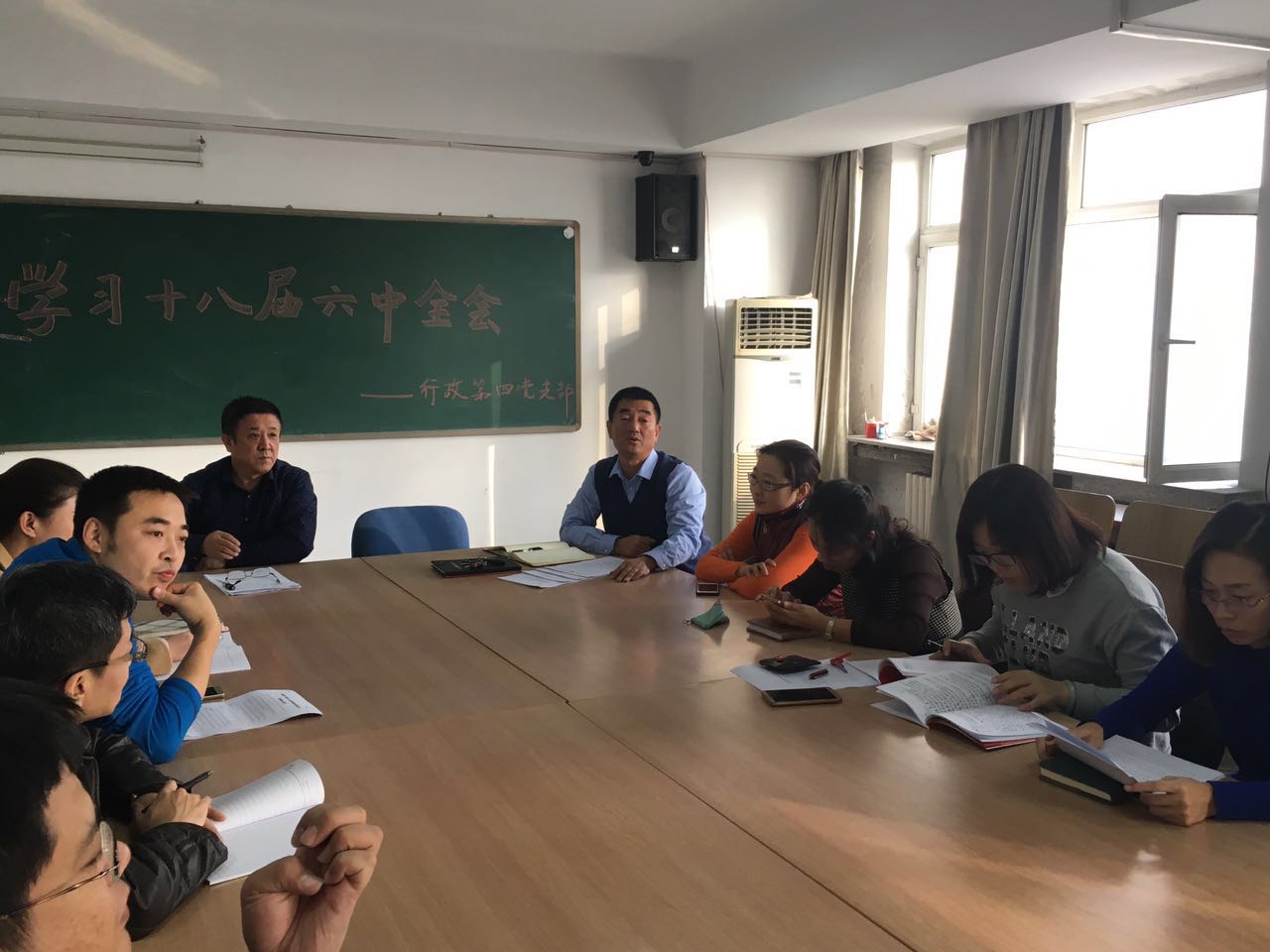 2016年11月8日行政第二党支部全体党员在南岗校区1号楼10楼会议室召开了支部党员大会,原文学习了党的十八届六中全会《公报》、省委书记王宪魁在省委理论中心组学习会上的讲话,《新形势下党内政治生活若干准则》、《中国共产党党内监督条例》。通读四个学习内容的全文后,大家感到很振奋。随后王凤新代表支部提出作为学校行政的工作人员,更要做到能够经受“四大考验”、克服“四种危险”,时刻牢记自己第一身份是党员。要坚持“三会一课”制度,坚持民主生活会和组织生活会制度,强化组织观念,工作中的重大问题和个人有关事项必须按规定按程序向组织请示报告。会上大家踊跃发言,积极表态。表示应该汲取十八届六中全会“从严治党”的精神,从严要求自己。积极地完善自我,努力学习,将理论知识与实践相结合,提高自身的政治修养和文化修养,更好地为学校教育事业发展贡献力量