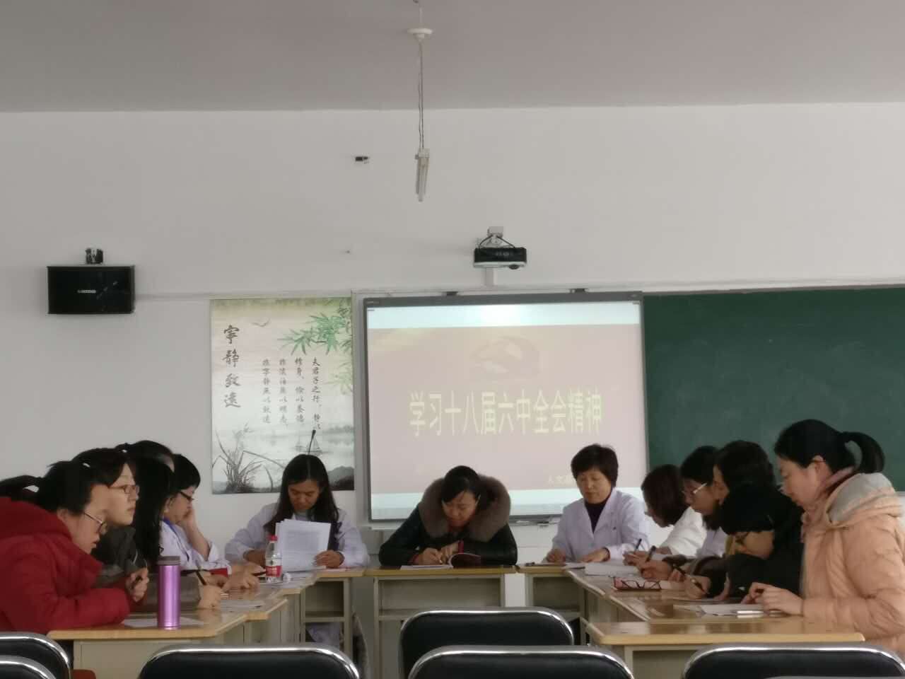 为全面学习党的十八届六中全会精神,护理系在李玲副校长及姜哲书记的带领下,11月4日全体护理系党员教师在实训楼开展学习《党的十八届六中全会公报》、《新形势下党内政治生活若干准则》、《中国共产党党内监督条例》等文件精神,并进行更深层次的解析。会上,姜哲书记向护理系全体党员教师传达了三个文件的重要内容,并从党的十八届三中至六中全会的“四个全面”的战略布局,分析阐释全面从严治党的核心地位,不仅全面建成小康社会需要从严治党,实行以依法治国为基本方略也必须坚持和强化党的领导;解析了十八届六中全会中强调的增强“一个核心”和“一个遵循”的重要性;宣讲了《公报》的八个突出的亮点和新提法。李玲副校长强调,十八届六中全会主题是全面从严治党,作为高校教师要把深入学习贯彻全会精神作为当前首要政治任务,通过多种方式开展《新形势下党内政治生活若干准则》和《中国共产党党内监督条例》的学习,先学一步,学深一步,模范遵守党章党规,严守党的政治纪律和政治规矩,坚持不忘初心、继续前进,坚持率先垂范、以上率下,为学生作出示范和表率最后,护理系全体党员教师展开讨论,就十八届六中全会精神表达自己理解与认识,表示作为一名党员教师要全面贯彻党的十八届六中全会精神,坚持从小事做起,以身作则,自觉将全会精神落实到实处,融入教学、融入科研、融入日常行为中,发挥党员教师应有的模范带头作用。