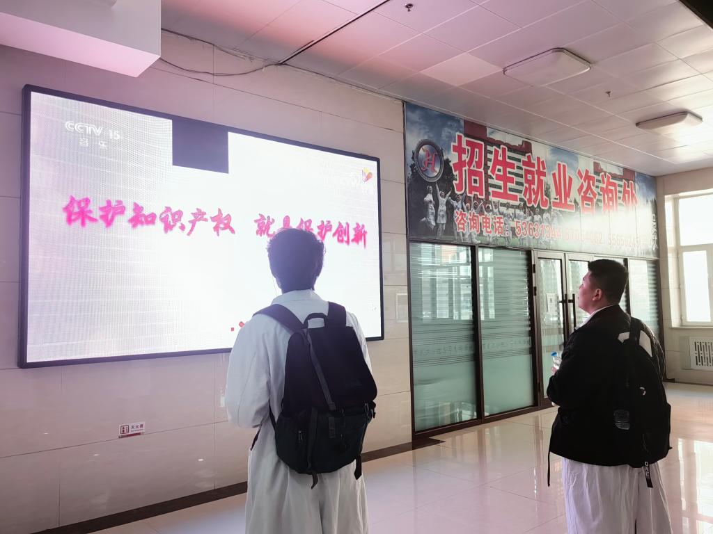 开展互联网+宣传活动,在学校微信公众号转发国家知识产权局2023年知识产权宣传周海报,转发知识产权相关文章,累计阅读量超1700人次。南岗校区1号楼大厅内电子屏幕播送知识产权公益广告,收效良好。