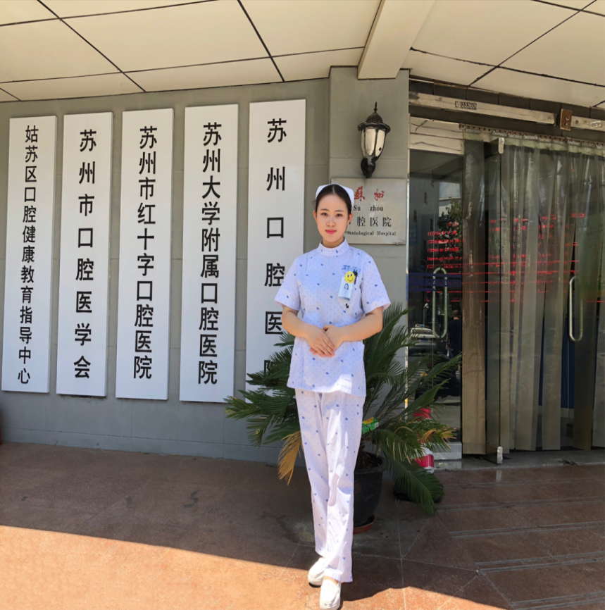 口腔护理专业谭晶晶,毕业后成为苏州大学附属口腔医院的一员。她说入职培训大会上一句“你们的人生即将翻开新的一页”一直刻在她的脑海中。她就业之后积极参加单位组织的活动,大学期间获得“优秀实习生”的荣誉。以下就是她在就业中的感想: