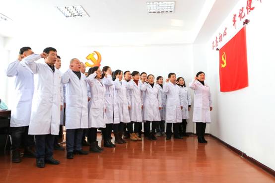 最后,全体党员面向党旗宣誓,重温入党誓词,牢记使命担当。