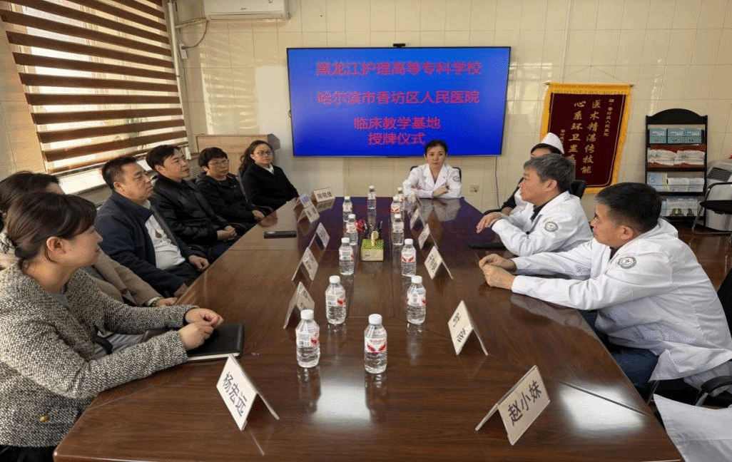 交流期间,我校为香坊区人民医院正式授予教学实习基地牌匾。香坊区人民医院院长孙洪涛、副院长于存钢,以及医务科、护理部、检验科、康复科等相关科室负责人参加座谈。双方围绕学生岗位实习安排、临床人才联合培养等内容深入交流,细化实习管理、临床带教等事项,达成合作共识。