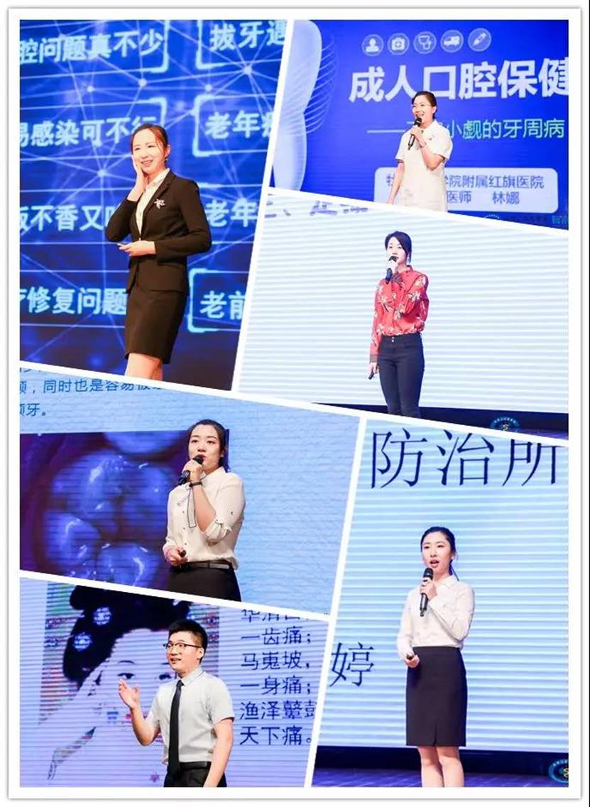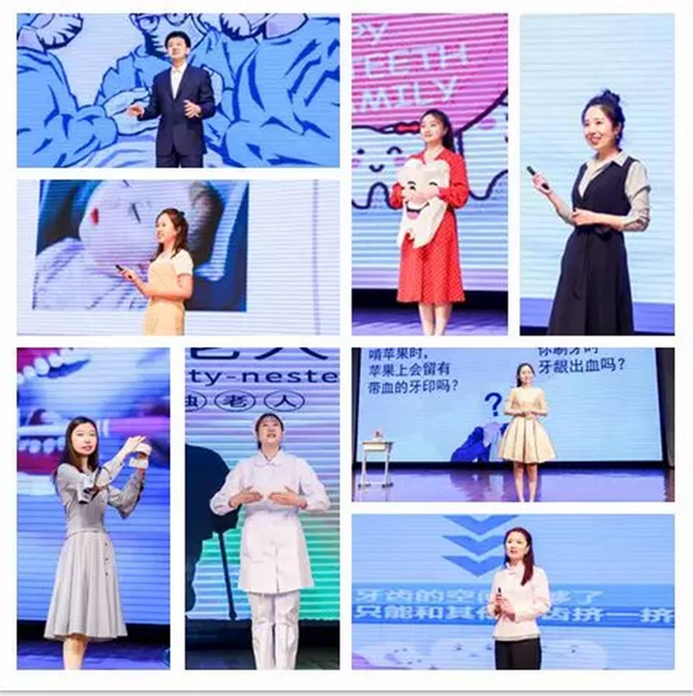 从《成人口腔保健之不容小觑的牙周病》到《那些年,我们一起长过的‘智齿’”,从《为什么医生总让你定期口腔检查》到《知否知否,有效刷牙必须有》等等,25位科普演讲者使出十八般武艺,把动画演示、多媒体音视频、实物道具等各种形式搬上舞台,生动展示出医学知识魅力,着力秀出科普趣味,上演了一场精彩绝伦的口腔科普盛宴!