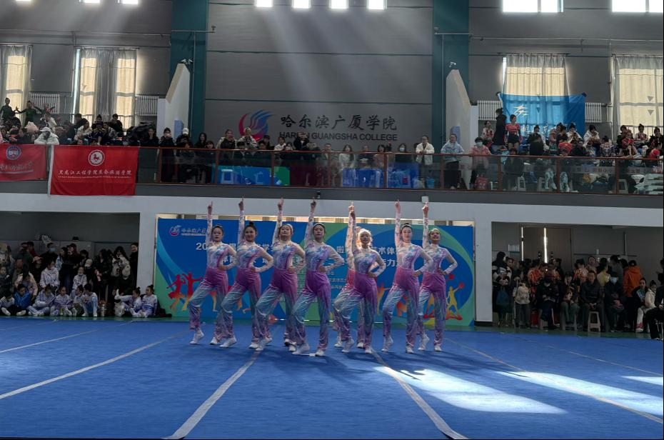 本次赛事是黑龙江省健美操、街舞领域的顶级竞技盛会,吸引了全省各地多支劲旅同场角逐,竞争异常激烈。赛场上,我校运动员精神饱满、自信昂扬,伴随着动感十足的音乐闪亮登场。无论是健美操项目中精准有力的托举、行云流水的旋转,还是街舞表演里卡点精准的律动、富有张力的肢体表达,队员们都将力量与柔美、技巧与创意完美融合。整套动作编排新颖独特,队形变换默契流畅,每一个细节都经过千锤百炼,每一次亮相都充满青春活力,极具感染力的表现不仅征服了现场评委,更赢得了观众们的阵阵喝彩。