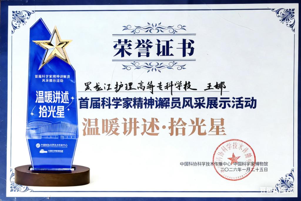 最终,在专家评委打分和大众评委现场投票后,我校作品荣获首届科学家精神讲解员风采展示活动“温暖讲述•拾光星”称号。